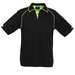65% Polyester, 35% Cotton pique knit Contrast panel polo with piping Low pill yarn Knitted collar and cuff Side splits with twill tape